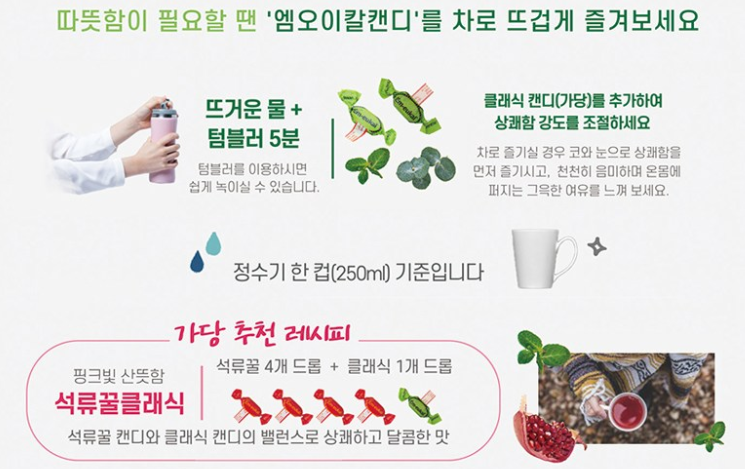 오마이갓! 상세 페이지를 보니 이게 뭐야? 캔디를 차로도 마실수 있다고오??!!