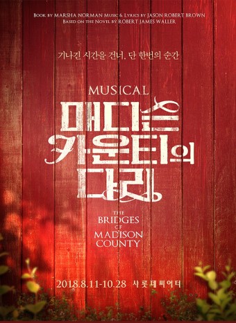 뮤지컬 *매디슨 카운티의 다리(The Bridges of Madison County)*는 2014년 브로드웨이에서 초연된 작품으로, 로버트 제임스 월러(Robert James Waller)의 동명 베스트셀러 소설을 원작으로 하고 있습니다. 이 작품은 한적한 시골 마을에서 펼쳐지는 짧지만 강렬한 사랑 이야기와 감성적인 음악으로 많은 관객들의 사랑을 받았습니다.